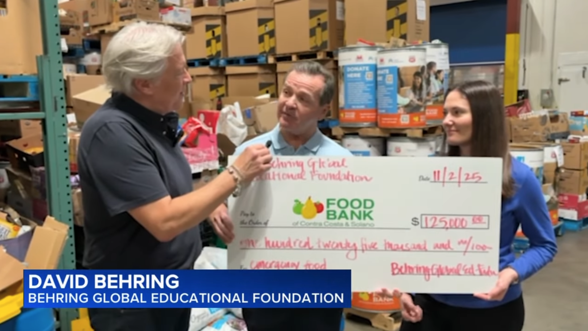 The Behring Global Educational Foundation (BGEF) is proud to have recently partnered with ABC7 Bay Area’s Feed California campaign to combat food insecurity across the region. During a special segment filmed at the Food Bank of Contra Costa and Solano, BGEF President David Behring presented a generous $125,000 donation to help provide meals for families in need.
